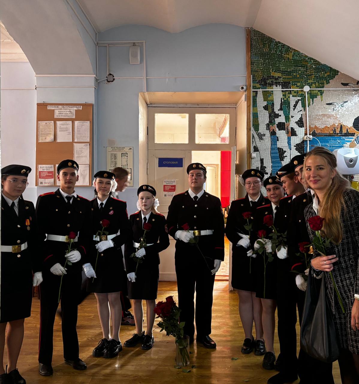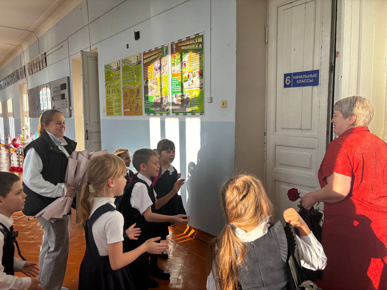 Обучающиеся 11 класса с утра выстроились в живой коридор и встретили каждого учителя словами поздравлений и громкими аплодисментами. Благодаря этому учителя получили заряд положительных эмоций на весь день.