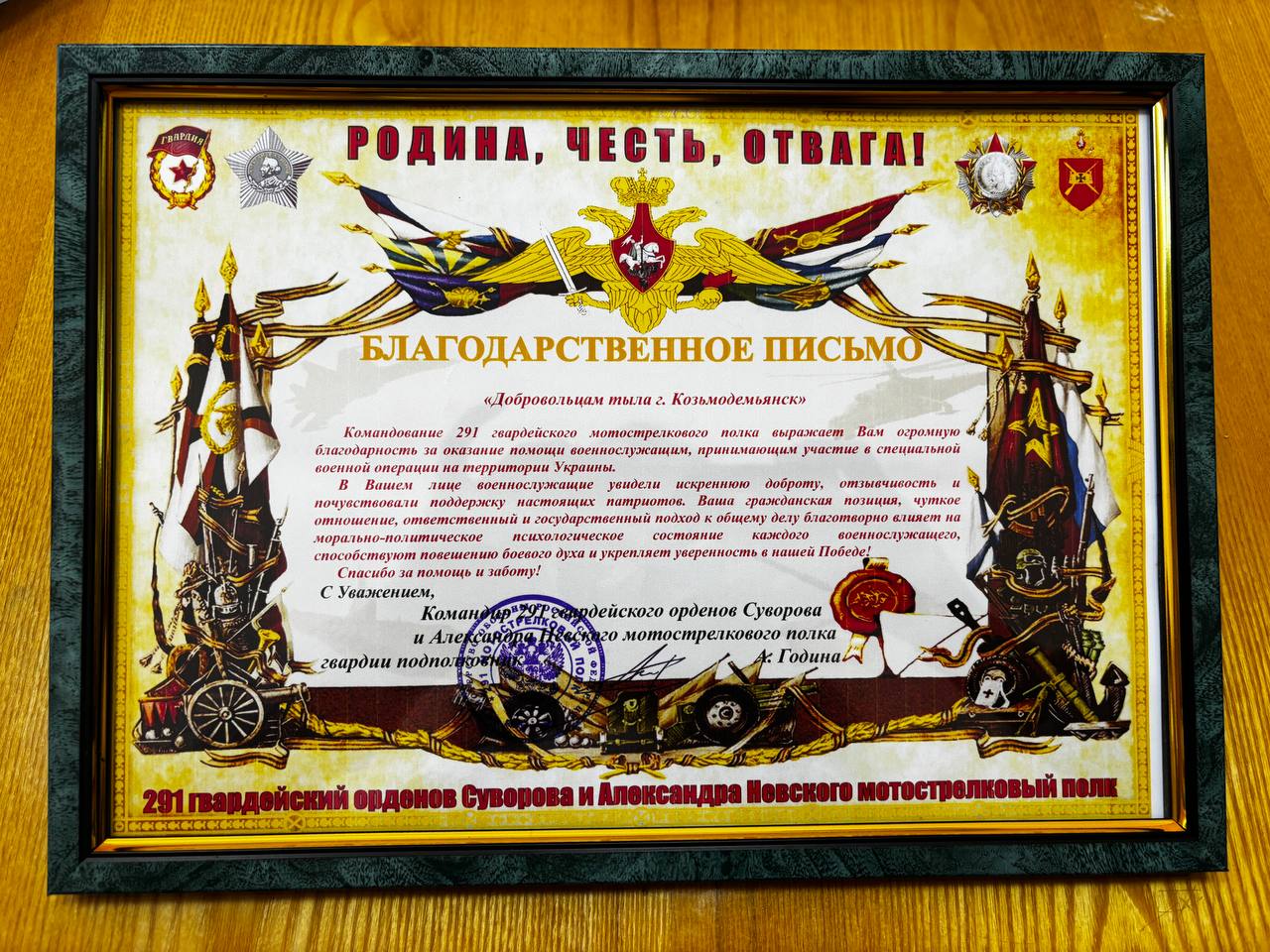 Сегодня на линейке глава муниципального образования, председатель собрания депутатов городского округа «Город Козьмодемьянск» Волков Игорь Николаевич вручил нашей школе благодарственное письмо от 291-го гвардейского ордена Суворова и Александра Невского мотострелкового полка. Командование выразило огромную благодарность за оказываемую помощь военнослужащим, участвующим в специальной военной операции на территории Украины. Выражаем искреннюю признательность учащимся, родителям и педагогам, активно поддерживающим акции по сбору гуманитарной помощи.
